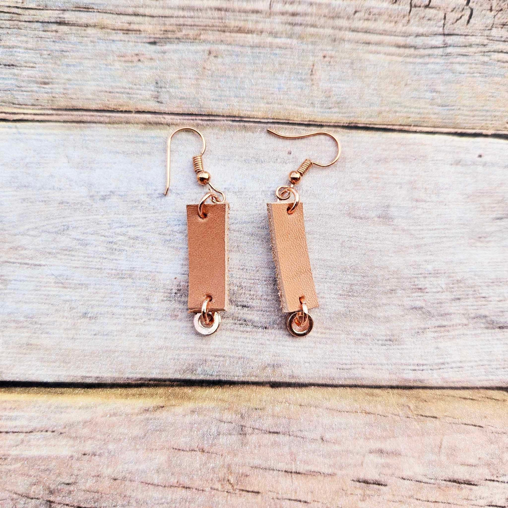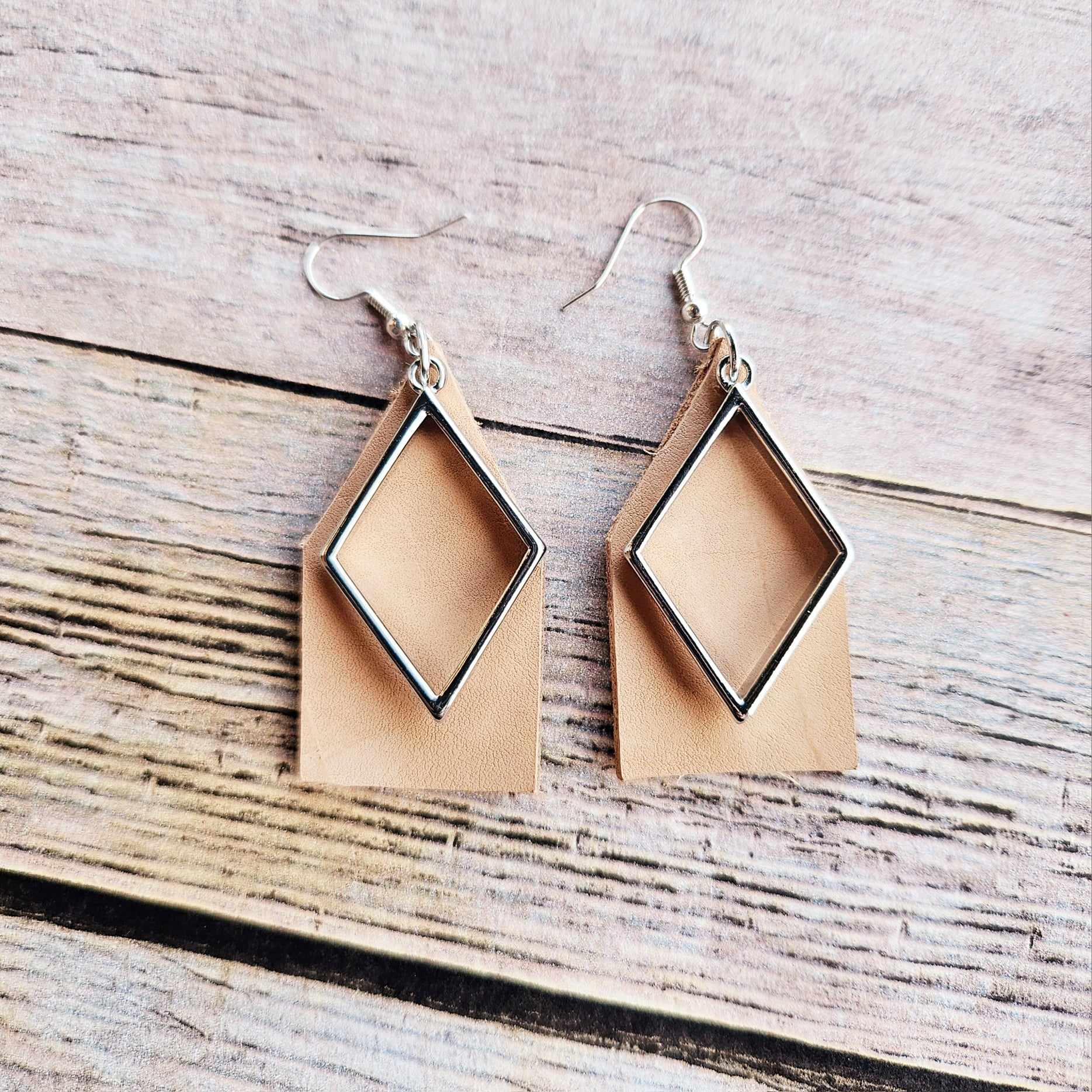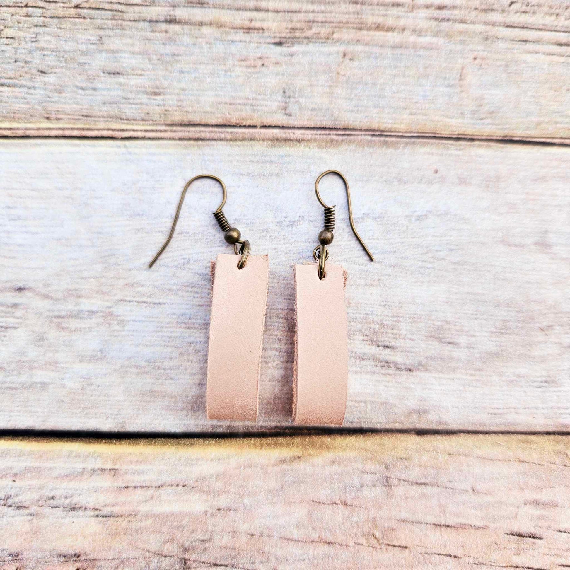 These artisanal dangle earrings are crafted from vegetable-tan leather and adorned with vibrant, assorted beads in various colors. Each handcrafted pair offers a unique, earthy elegance for any style.