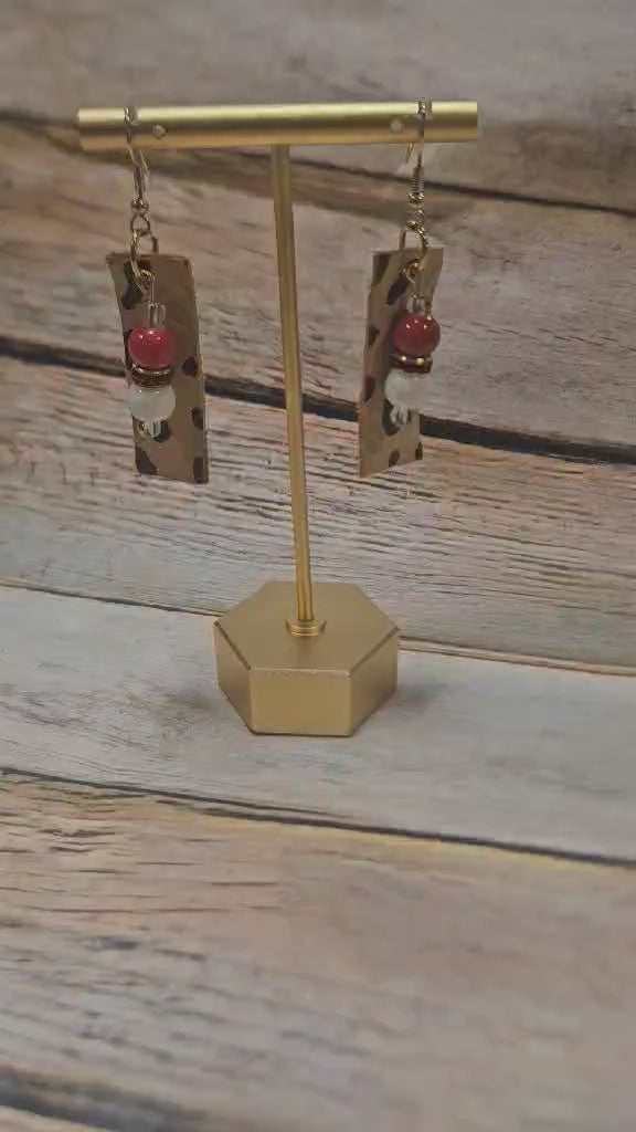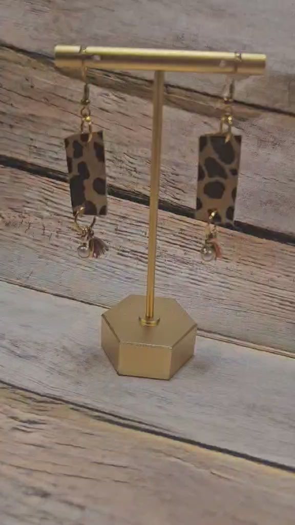 These unique, handcrafted earrings showcase vibrant leopard print leather in various shapes and colors. Each pair is meticulously crafted, offering a bold, stylish statement for any occasion.