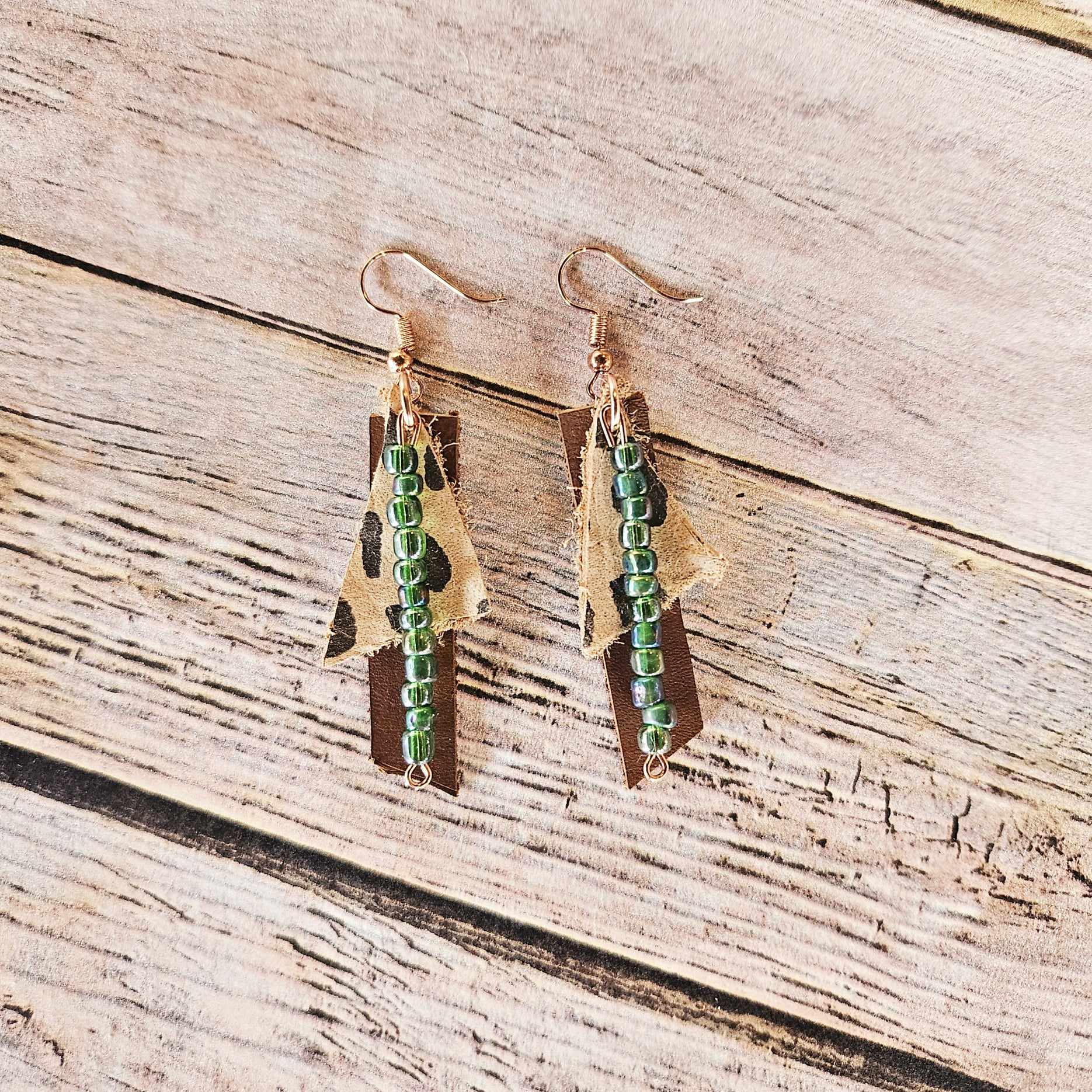 These unique, handcrafted earrings showcase vibrant leopard print leather in various shapes and colors. Each pair is meticulously crafted, offering a bold, stylish statement for any occasion.