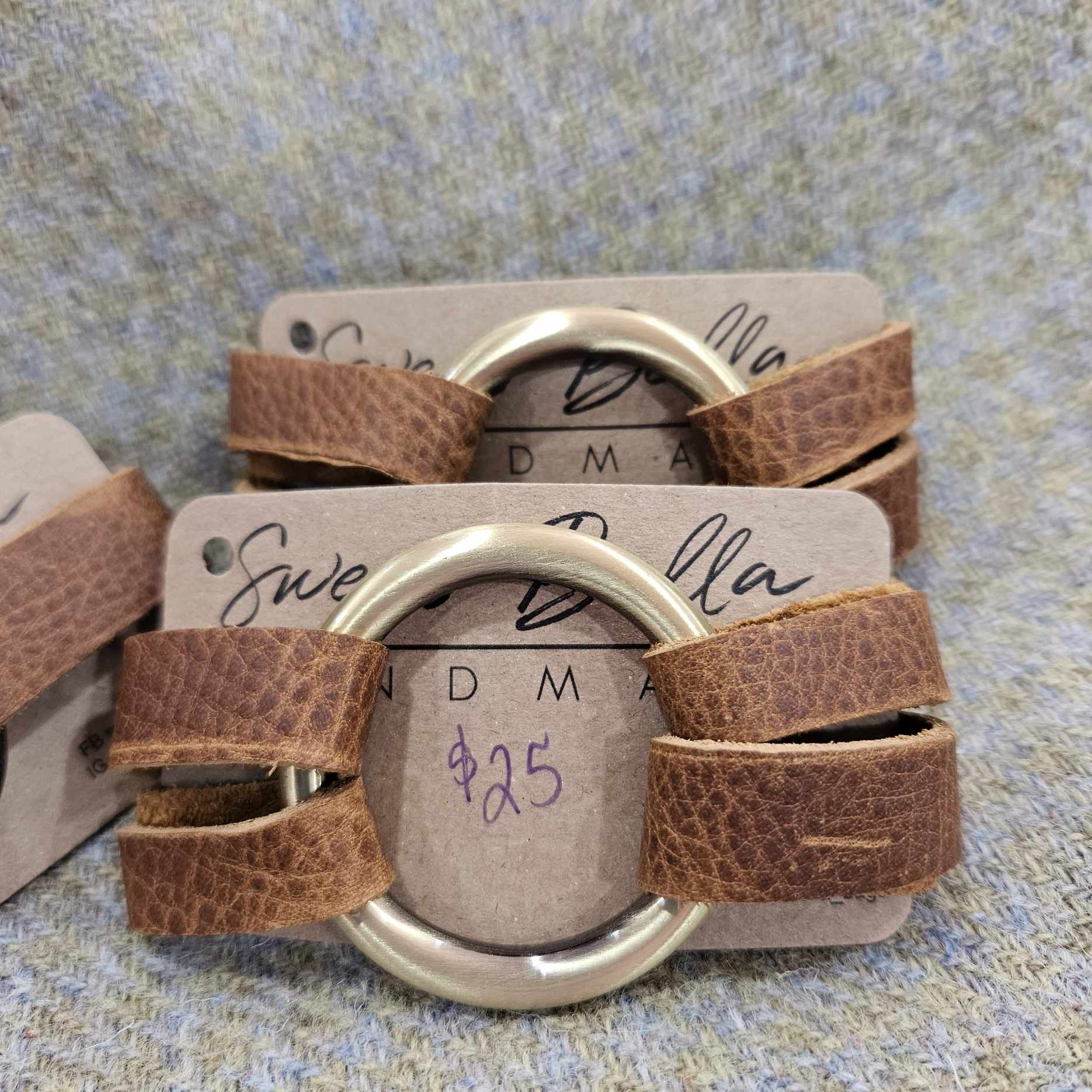 This leather bracelet is made with genuine leather, antique gold hardware and adjustable.