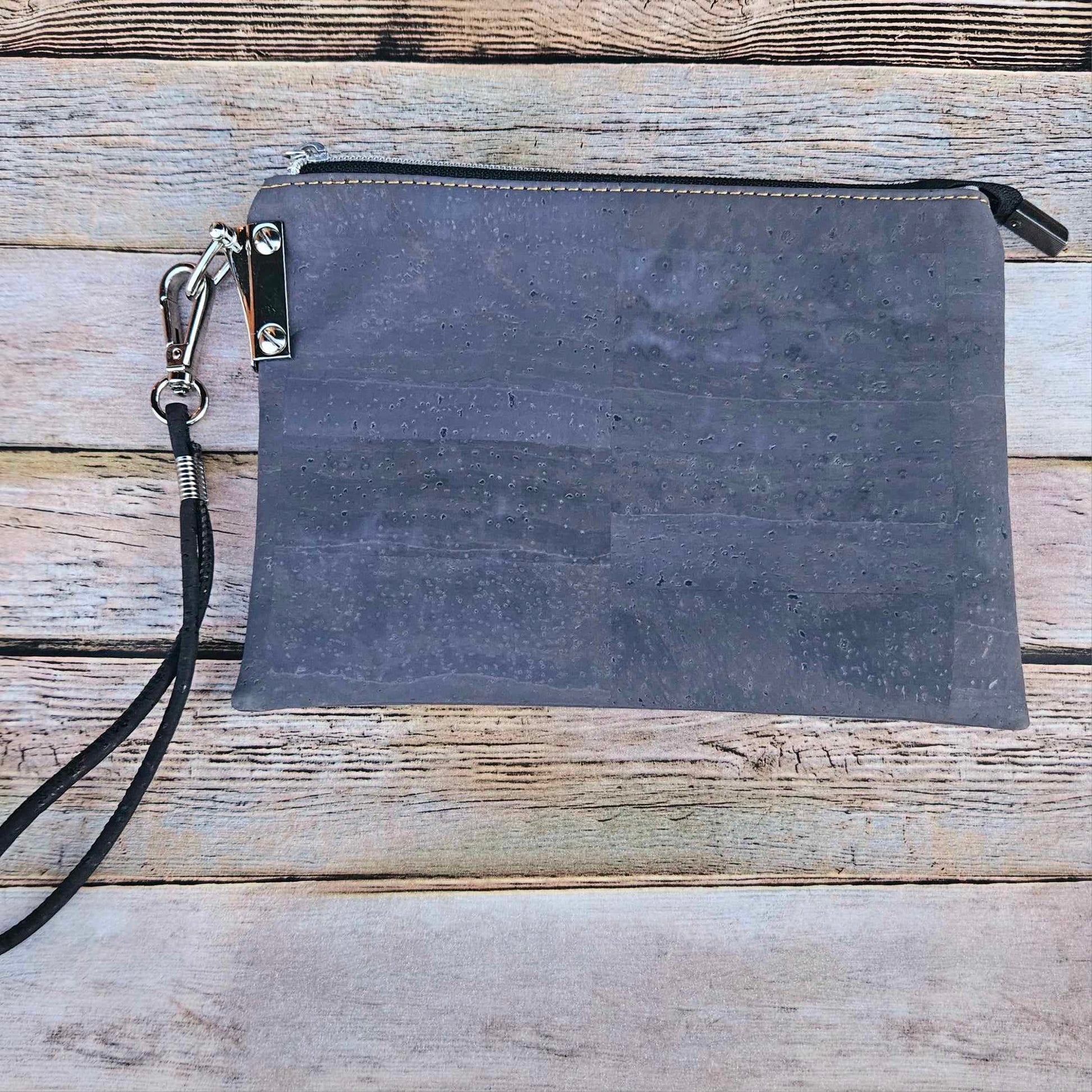The Oleta Belle cork clutch wristlet is a stylish way to stay organized while on the go. It can be used as a small clutch or with a simple hardware alteration, a crossbody bag. Each wristlet is crafted with quality cork, lined with beautiful fabric, and features several interior card slots. Cork has many material benefits, being supple, durable, and highly resistant to water and most importantly environmentally friendly. The Oleta Bell will perfectly pair with almost any outfit allowing you the ease of safely carrying your phone, keys, cash, cards, makeup and more. Read more on the hardware and materials we use here.