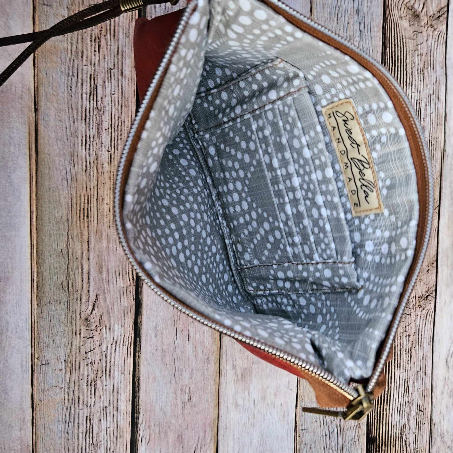 The Oleta Belle cork clutch wristlet is a stylish way to stay organized while on the go. It can be used as a small clutch or with a simple hardware alteration, a crossbody bag. Each wristlet is crafted with quality cork, lined with beautiful fabric, and features several interior card slots. Cork has many material benefits, being supple, durable, and highly resistant to water and most importantly environmentally friendly. The Oleta Bell will perfectly pair with almost any outfit allowing you the ease of safely carrying your phone, keys, cash, cards, makeup and more. Read more on the hardware and materials we use here.