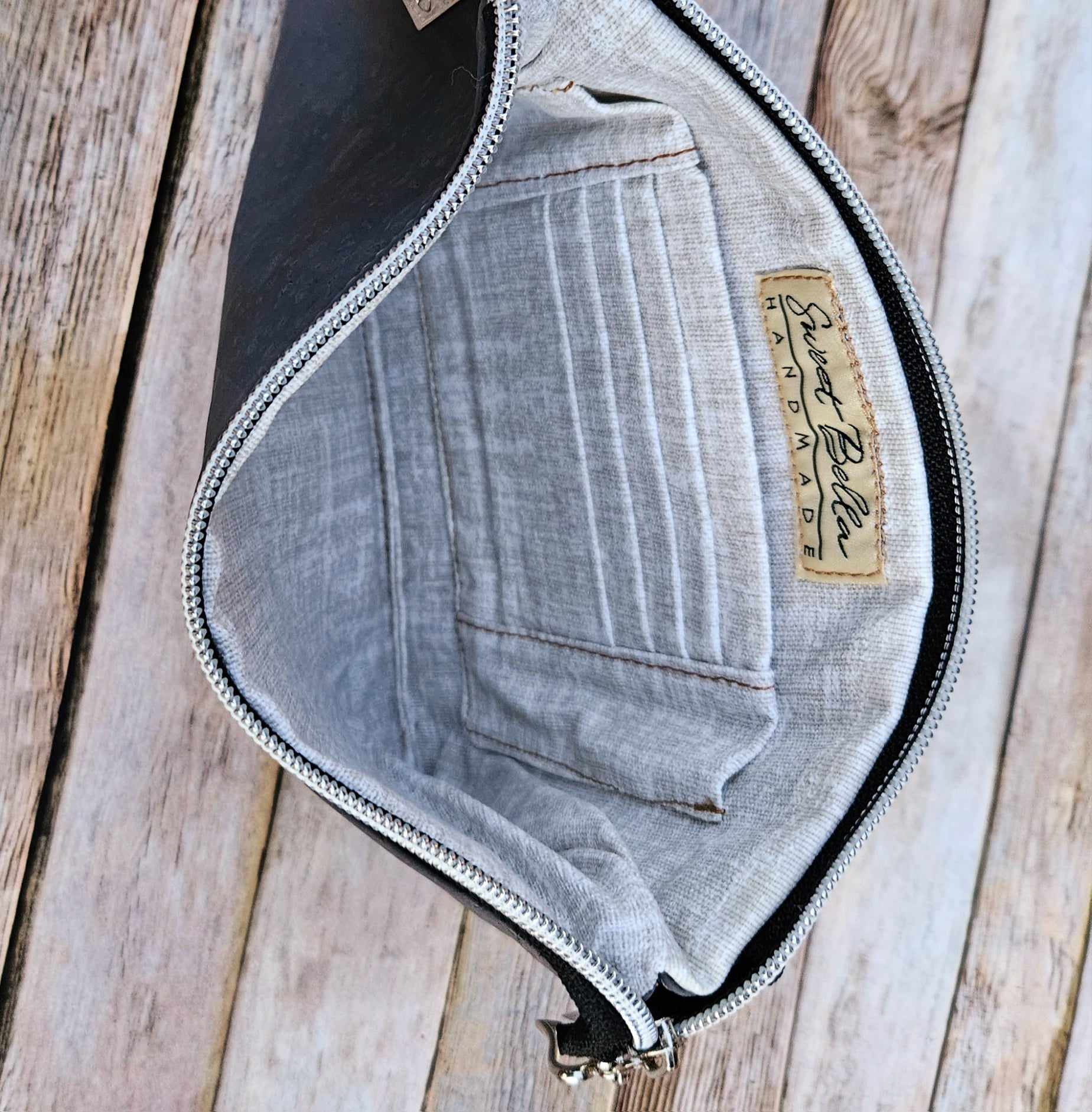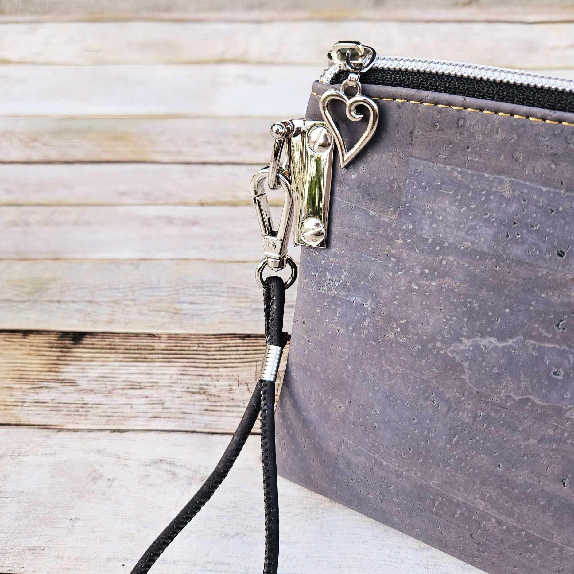 The Oleta Belle cork clutch wristlet is a stylish way to stay organized while on the go. It can be used as a small clutch or with a simple hardware alteration, a crossbody bag. Each wristlet is crafted with quality cork, lined with beautiful fabric, and features several interior card slots. Cork has many material benefits, being supple, durable, and highly resistant to water and most importantly environmentally friendly. The Oleta Bell will perfectly pair with almost any outfit allowing you the ease of safely carrying your phone, keys, cash, cards, makeup and more. Read more on the hardware and materials we use here.